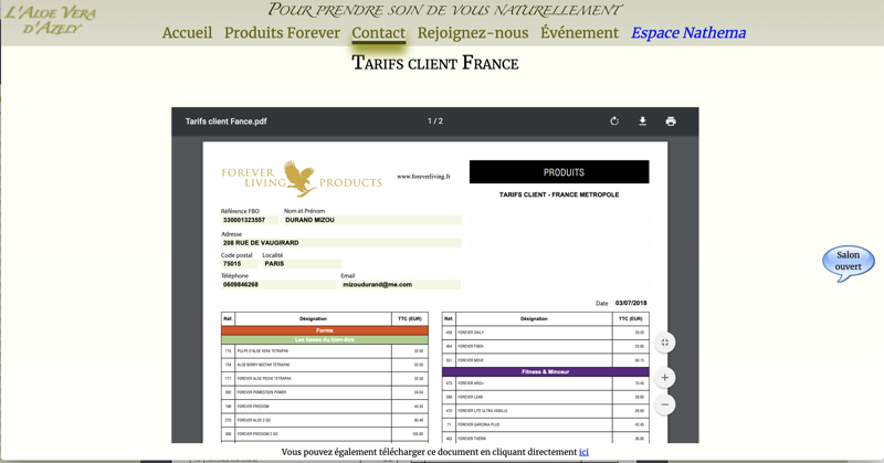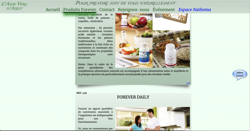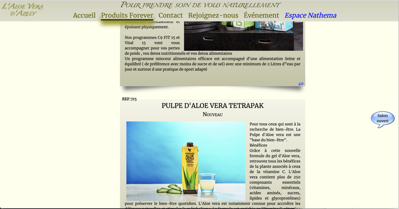 Site de commerce à distance orienté santé, bien-être et cosmétique, à base d'Aloe Vera