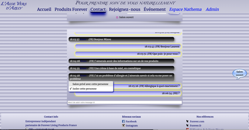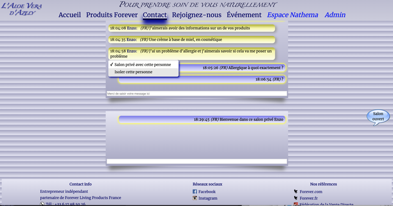 Communication et salon avec l'administrateur